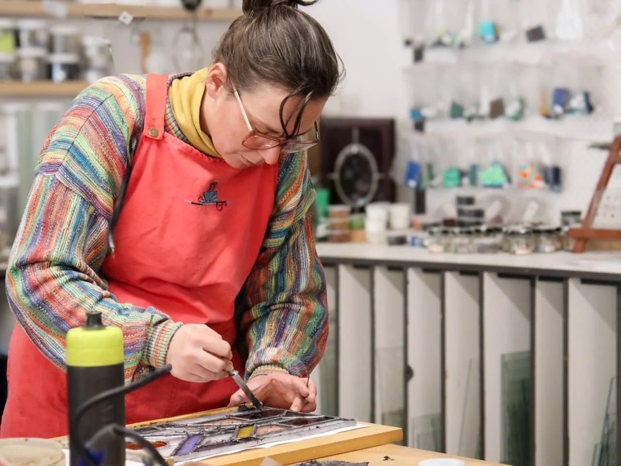 Each participant will complete a sample panel to take home, all tools and materials are provided for use during the course and a wide range of colours and textures of glass are available for use in your project. This is a beginners adult workshop, suitable for ages 16+. Unfortunately you will not be able to work on your own window designs or repair your own project during this workshop.